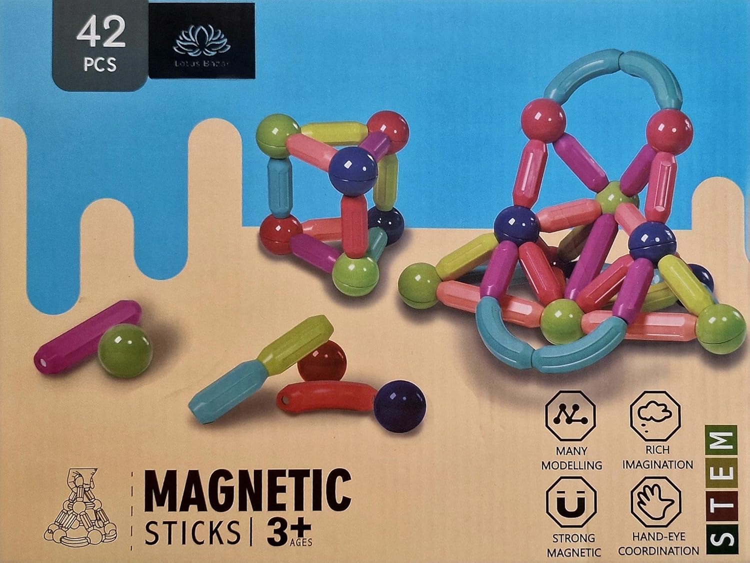 من الأشكال البسيطة والأبراج الطويلة إلى الهياكل ثلاثية الأبعاد المعقدة والسيارات والحيوانات الخيالية، توفر القطع الـ 42 إمكانيات بناء لا حصر لها للمبتدئين والمخترعين الشباب على حد سواء.