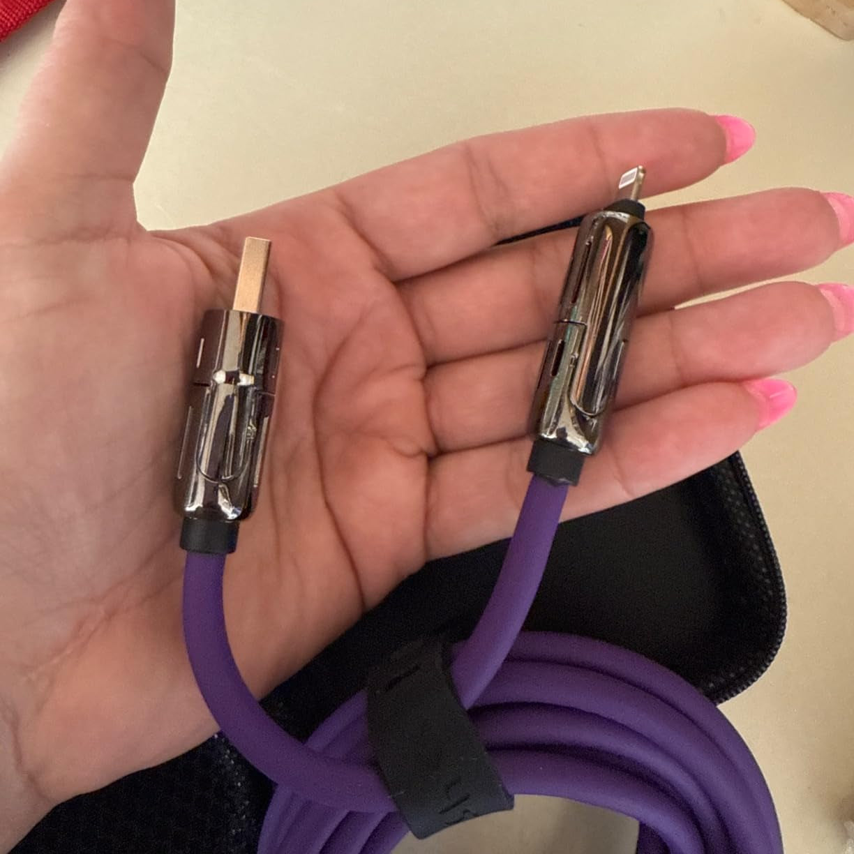 بسّط حياتك مع كابل USB 4 في 1 هذا، الذي يتميز بموصلات USB-C إلى USB-C، وUSB-C إلى Lightning، وUSB-A إلى USB-C، وUSB-A إلى Lightning. اشحن أي جهاز تقريبًا، من أجهزة iPhone وiPad إلى هواتف Samsung Galaxy وأجهزة MacBooks وأجهزة الكمبيوتر المحمولة وغيرها، بكابل واحد أنيق.