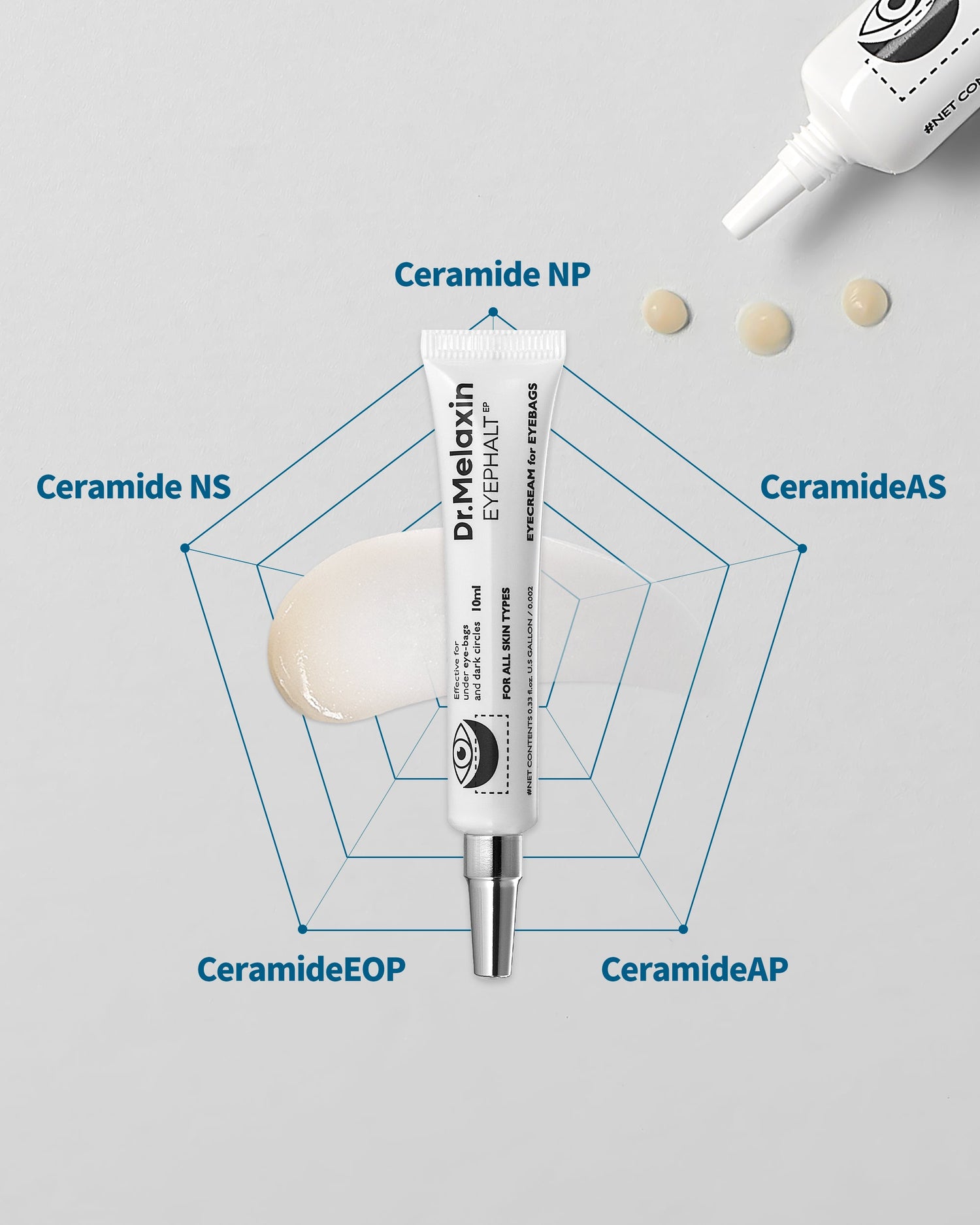 كريم دكتور ميلاكسين آيفالت لعلاج الهالات السوداء غني بمركب سيراميد متطور. هذه المكونات أساسية لتقوية حاجز البشرة الطبيعي والحفاظ على رطوبة منطقة أسفل العين الحساسة، ومنع الجفاف وتقليل ظهور الخطوط الدقيقة والتجاعيد.