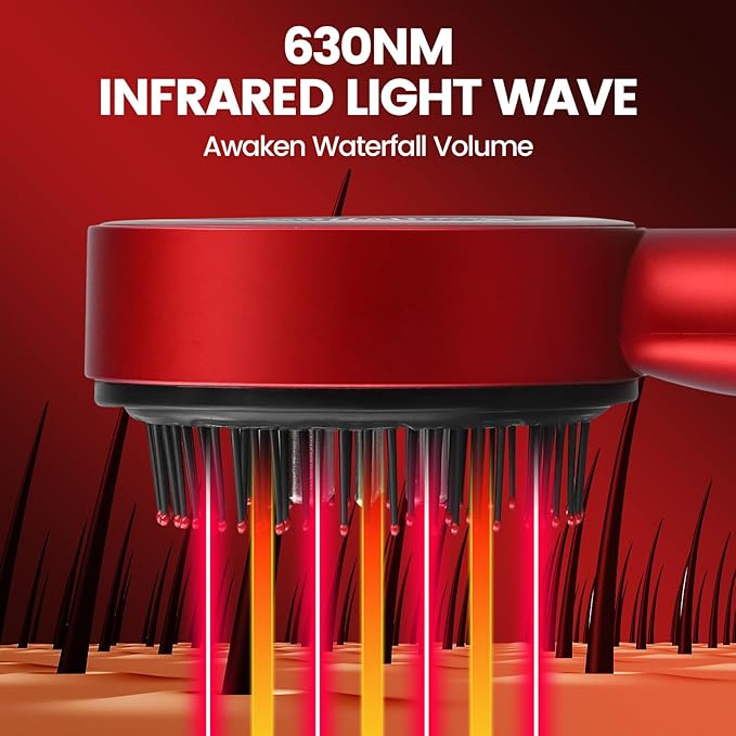(630-655 نانومتر): يعزز الدورة الدموية، وينشط بصيلات الشعر، ويدعم مرحلة النمو.