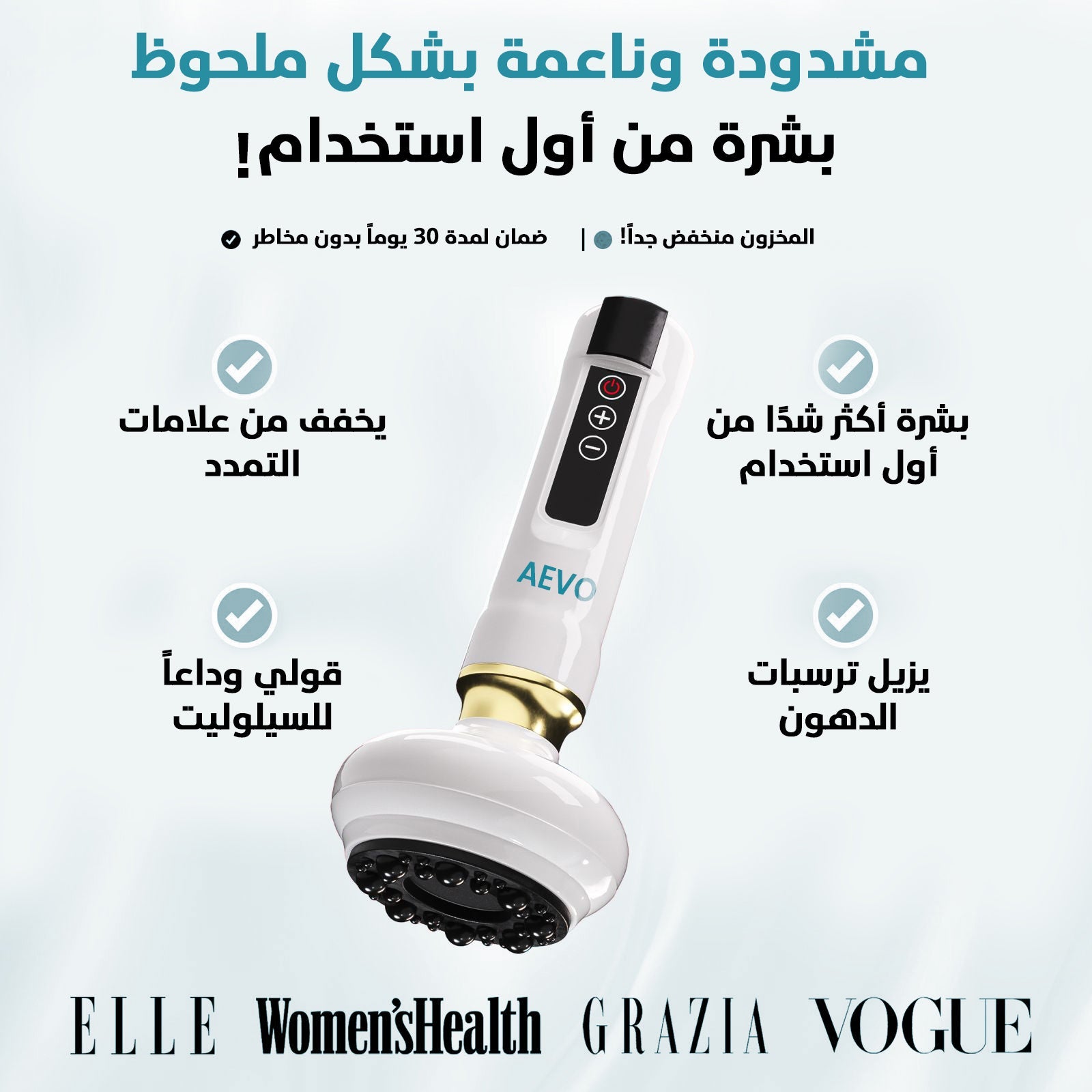 النتيجة؟ بشرة أكثر نعومةً وتماسكًا وتناسقًا، مع تقليل السيلوليت، وتقليل ترهل الجلد، وعلامات التمدد - كل ذلك من راحة منزلك.